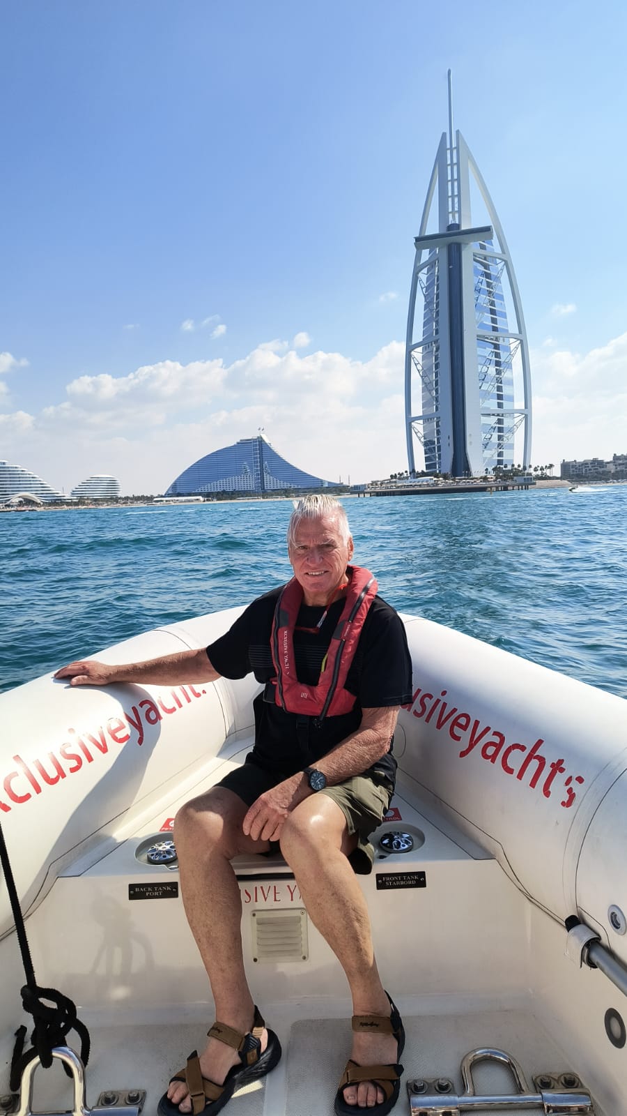 Suddenly we find ourselves in front of the famous Burj Khalifa hotel. The captain stops the boat to allow for photos