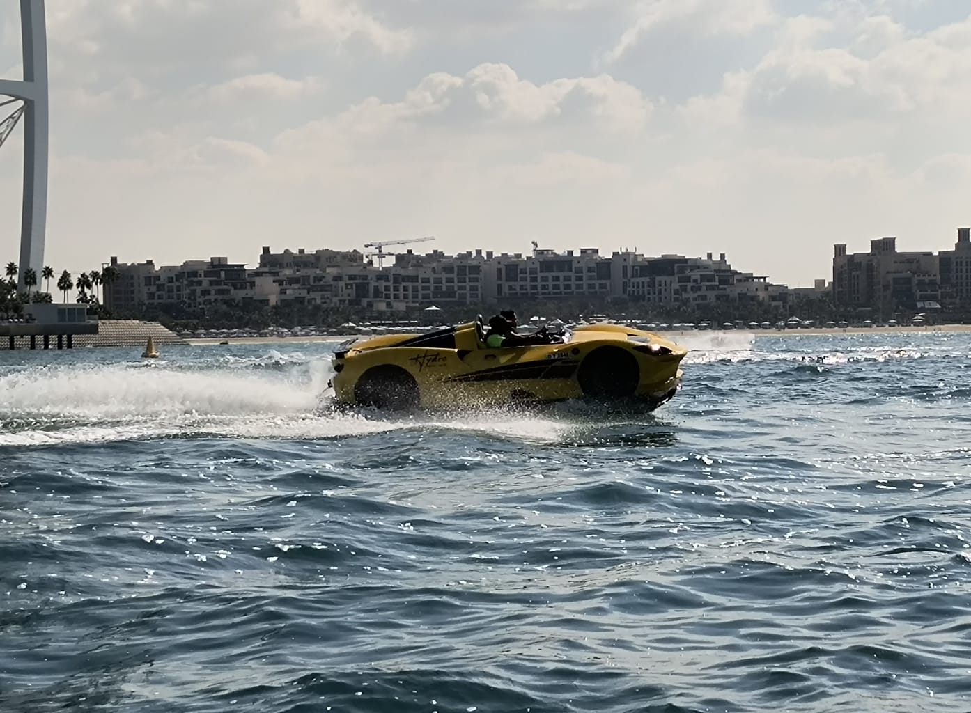 Our speed boat is impressive and a lot of fun, but it pales into insignificance when a race car whips across our bow at an alarming speed.