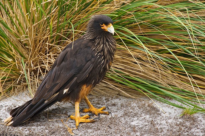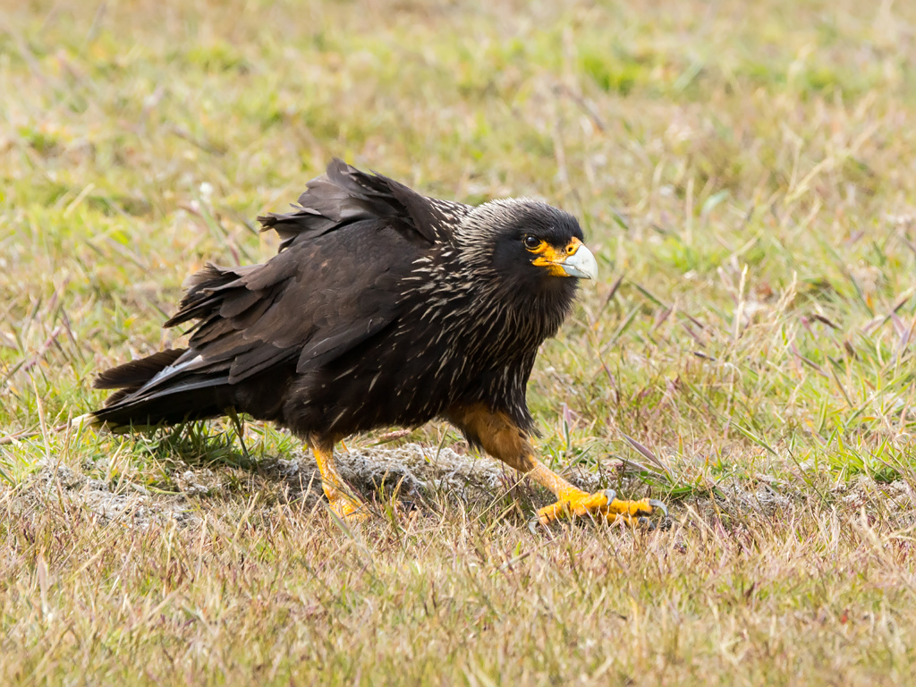 It is surrounded by a wild and windswept garden. In and around that garden there happen to be several striated caracaras hanging out. Now please contain your excitement, but this bird (that’s what a striated caracara is) is the main reason for visiting the island. It is the second rarest bird of prey in the world. There are only 750 pairs left. Their main habitat is the Falkland Islands, and they are particularly fond of Carcass Island.