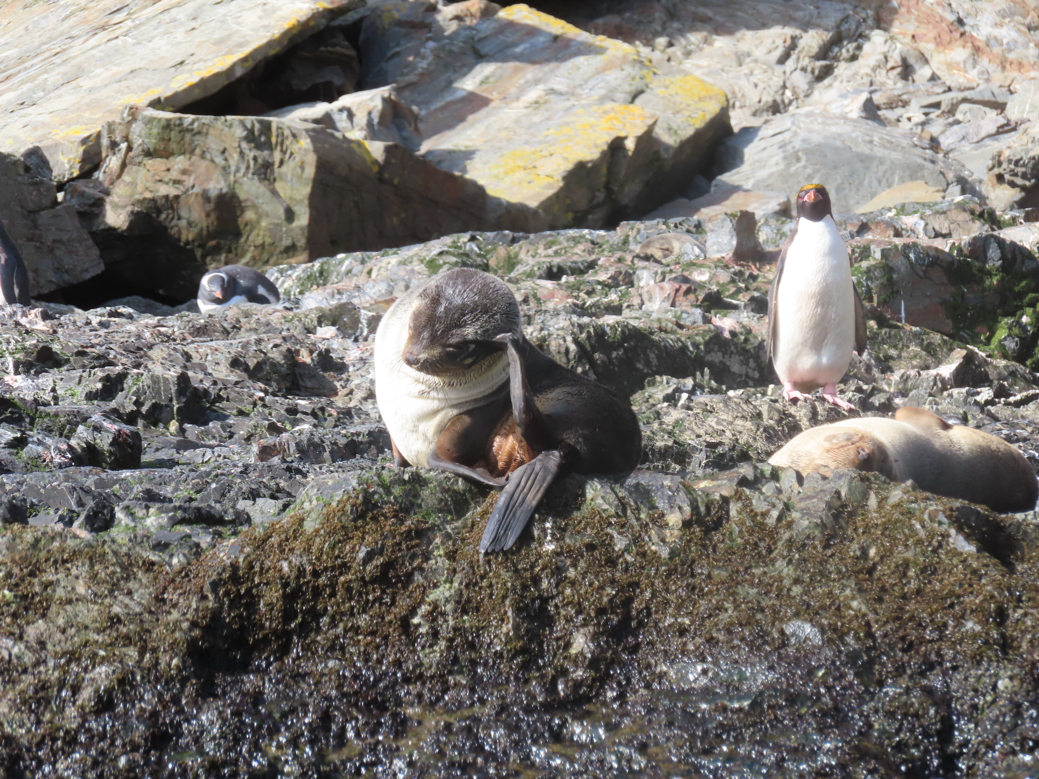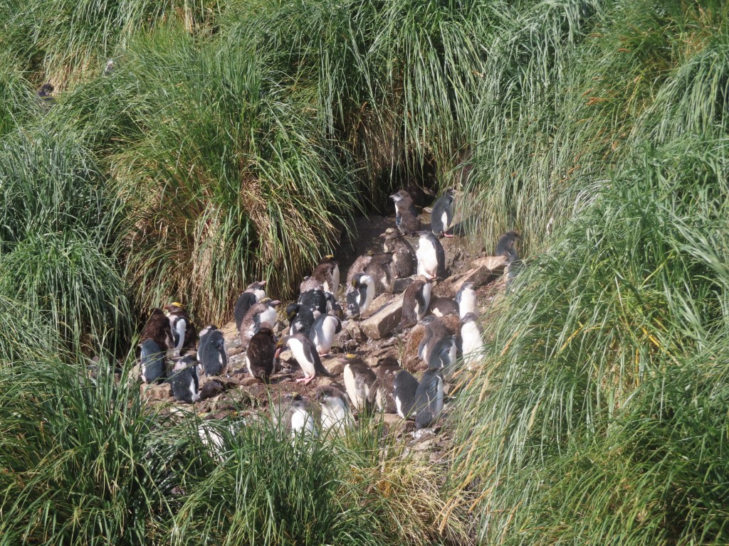 But the smarter penguins see the tussock grass further up the cliff and know that living up there would be a step up in more ways than one. Getting there involves a bit of a climb.