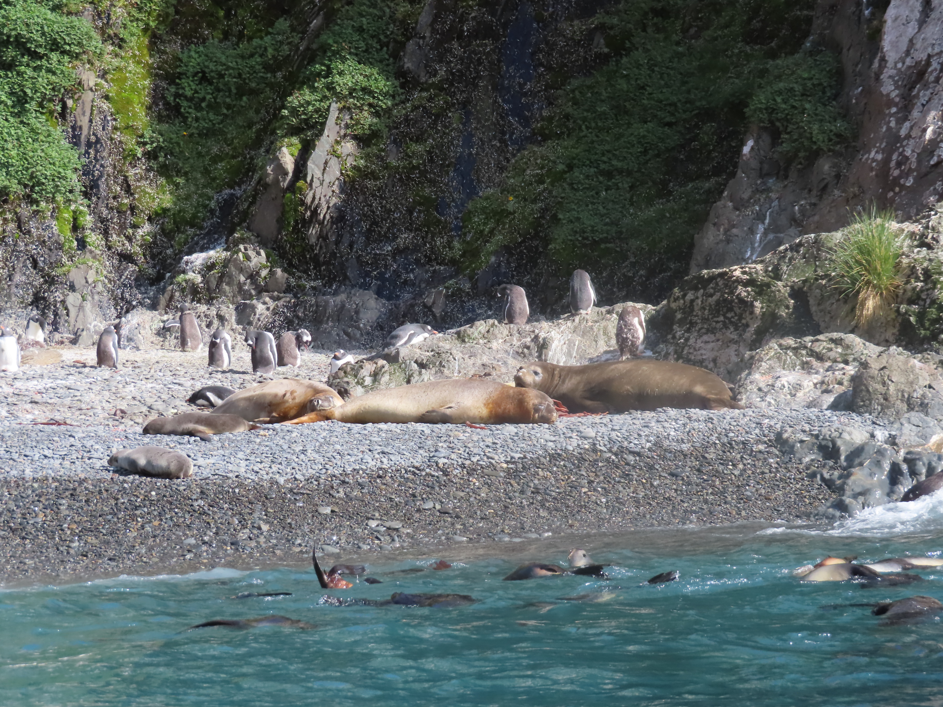 The ship lowers its zodiacs into the water and we take off on a tour of the bay, sticking close to the rocks and the wild life.