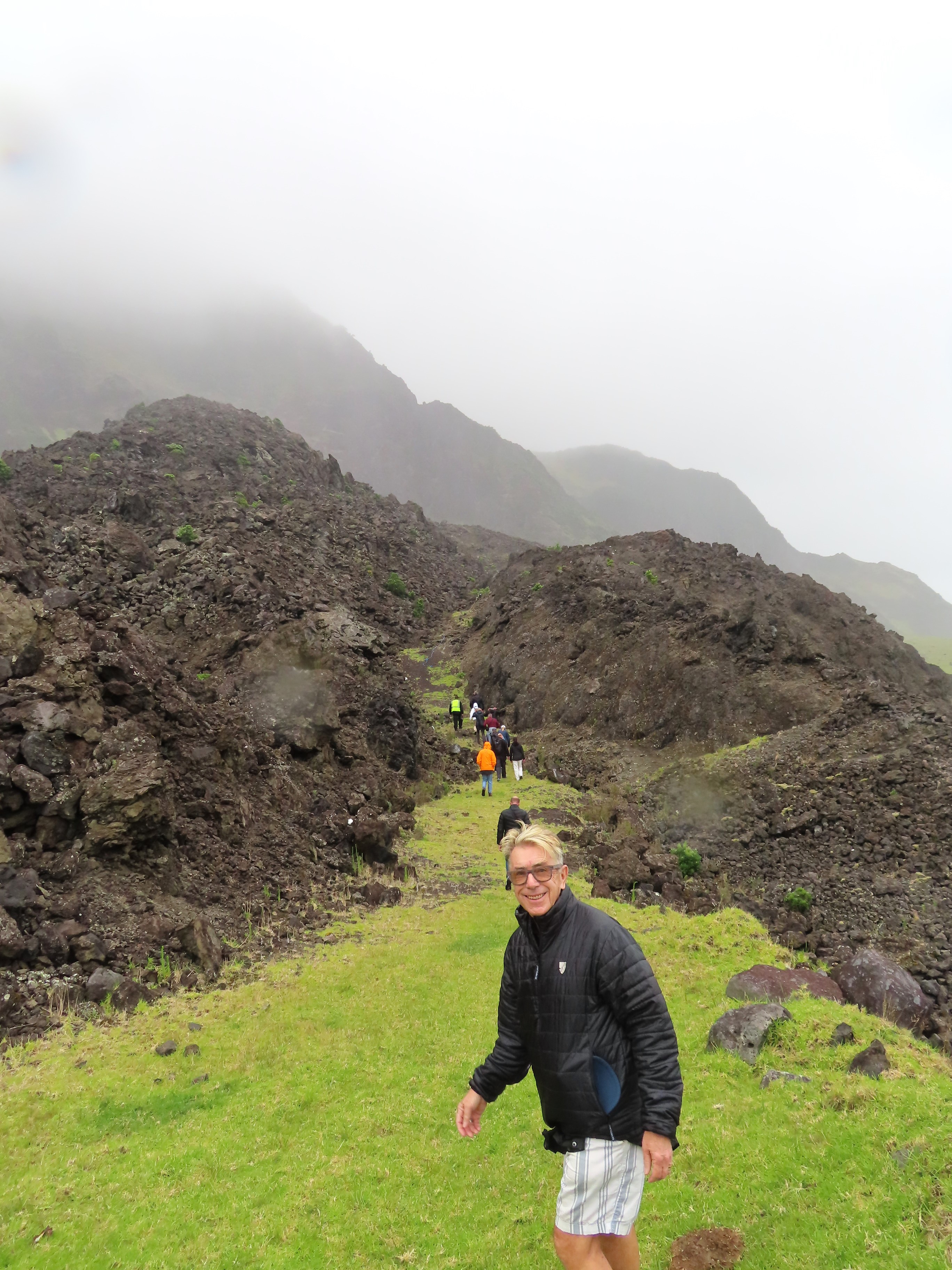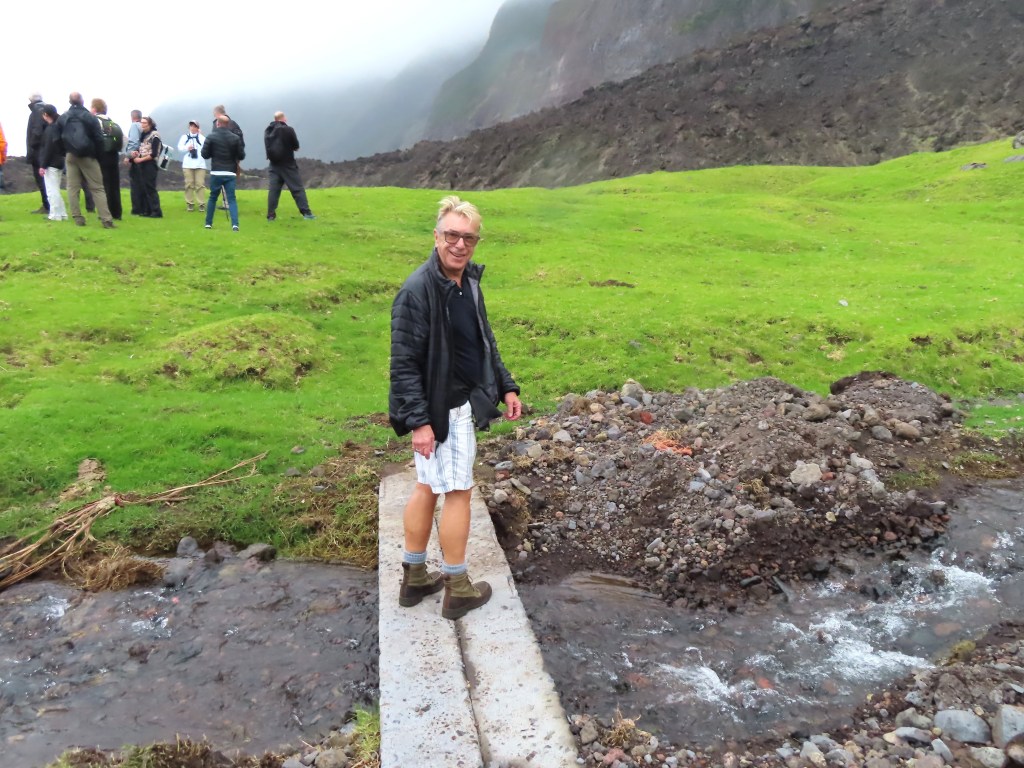 There is little to do on the island. I should rephrase that. There is nothing to do on the island. But the islanders, excited at having a cruise ship visit, want us to make the most of it. Three of them have agreed to lead anyone who wants to go up the volcano. In a rash moment we decided that is what we would do.
