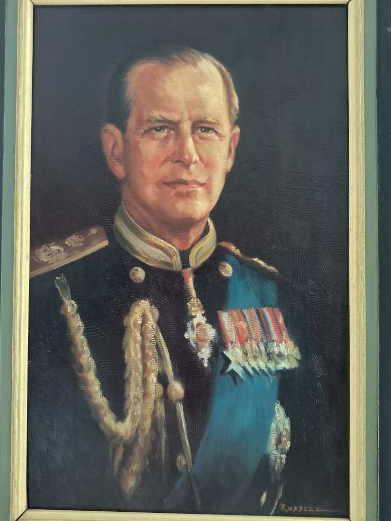 But wait, there is more! The hallway leads us into the living room. Here we find the Duke of Edinburgh staring down at us from above the fireplace.