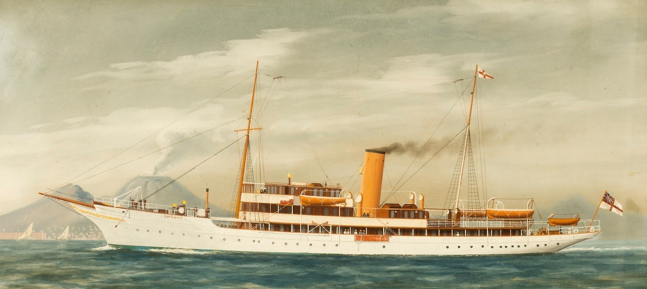 So he traveled the world with his mother (oh dear). They traveled in some considerable style, on their steam yacht named Sapphire, with a crew of just fifty! There were his foibles to be taken care of, and there is nothing worse than not having enough help.