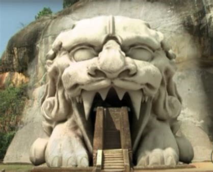 It was accessible only through the mouth of an enormous carved lion which used to sit on a small plateau half way up the rock.