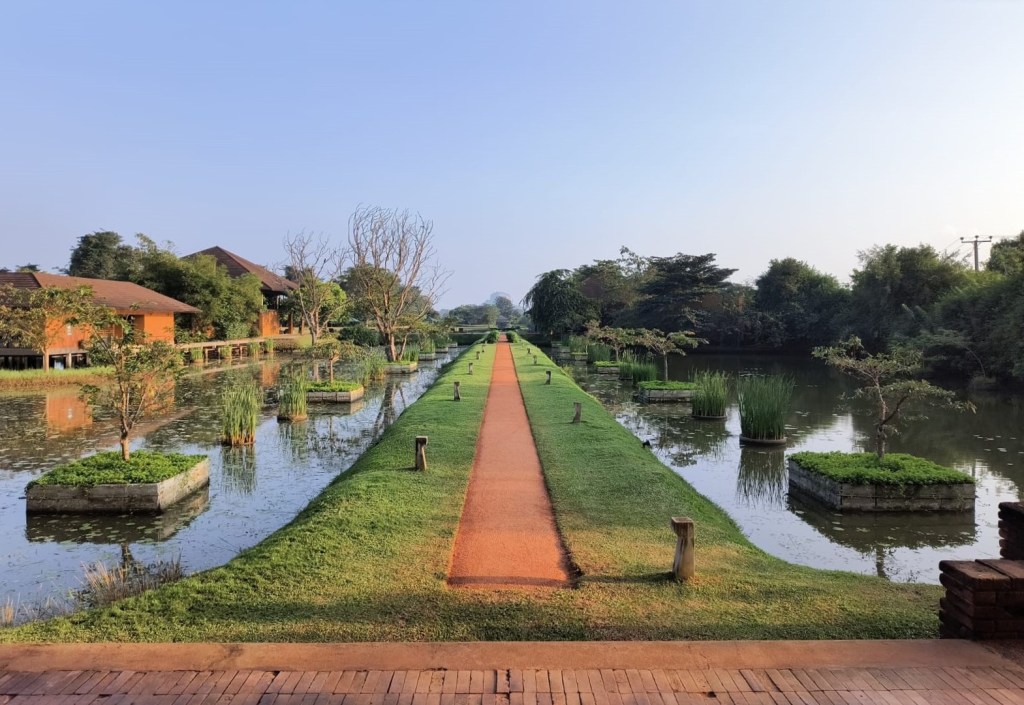 The grounds are huge and have man-made lakes and canals laid out in perfect symmetry, with walking paths in between.