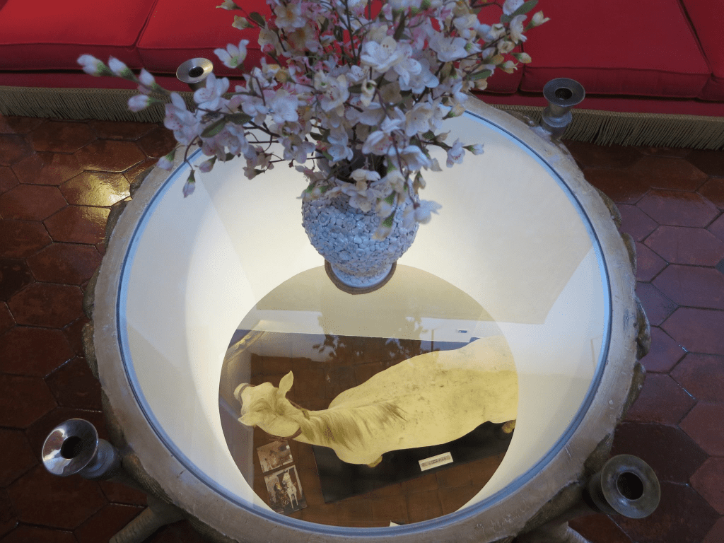 Well that’s not quite true. There is one – a stuffed horse. But it is sort of hidden. The coffee table that I just showed you has a glass top, and when you look down on it you can see the horse