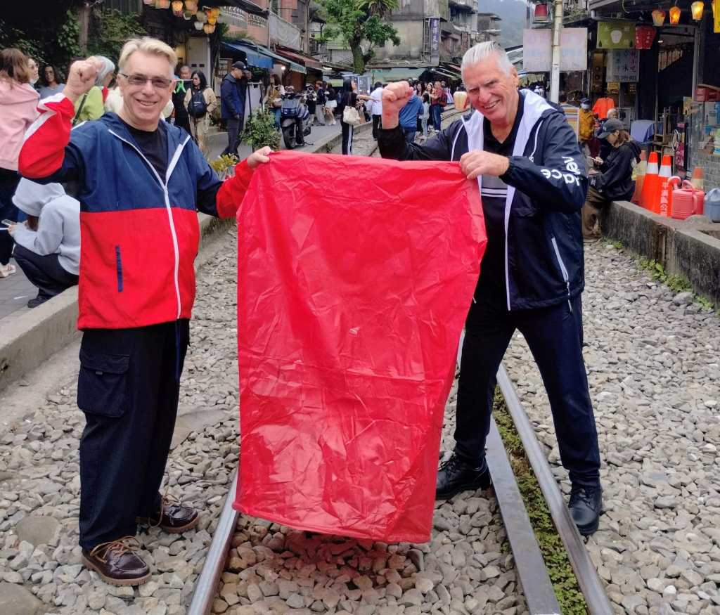 There are only a couple of places now where releasing the lanterns into the sky is still allowed and one is Shifen, a small village about an hour out of Taipei. We have missed the actual day of the Festival, which by the look of the photo introducing this blog, would be just too crazy, but we can still go to Shifen and release a lantern into the sky.