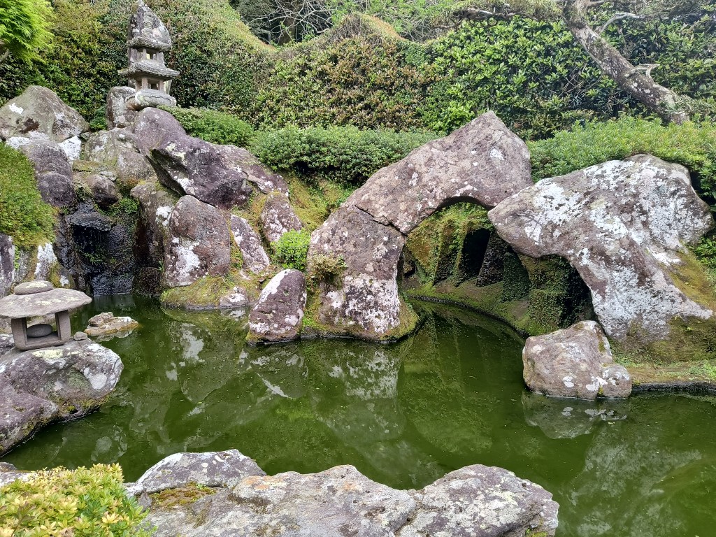 Kagoshima is the next port of call. We rented a car and drove ourselves – a first in Japan. Gordon found a scenic short cut, and claimed he knew exactly where we were despite Google Maps showing us as a dot in the middle of a green background with not a road to be seen.