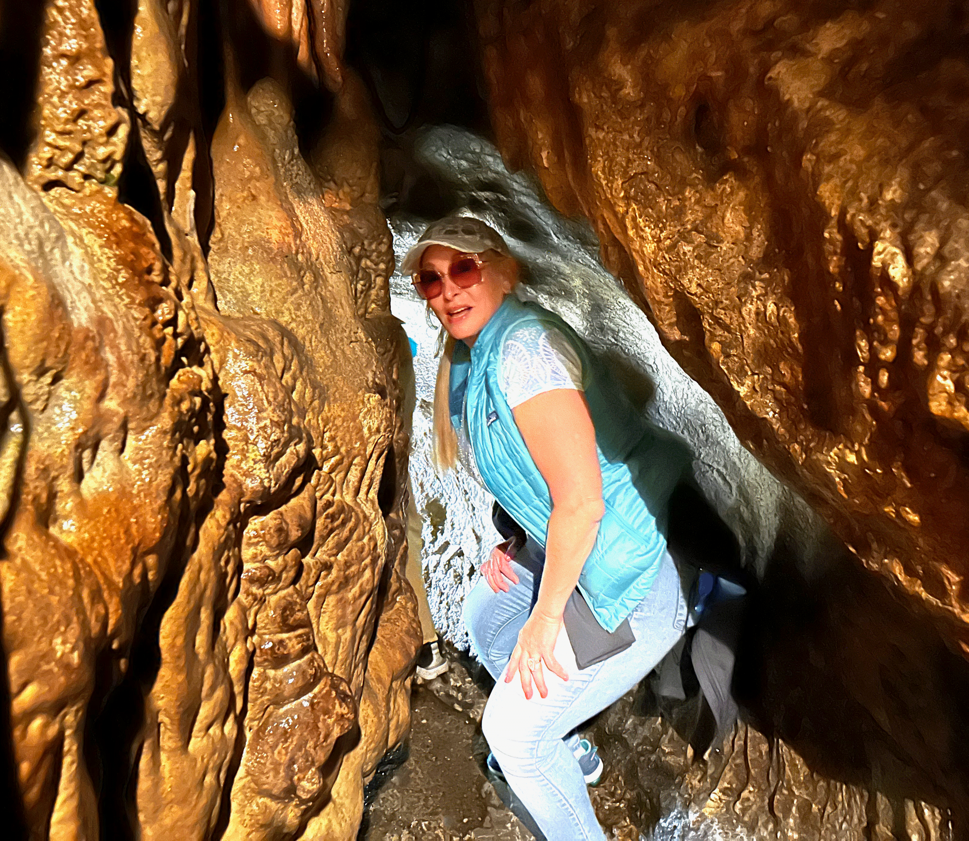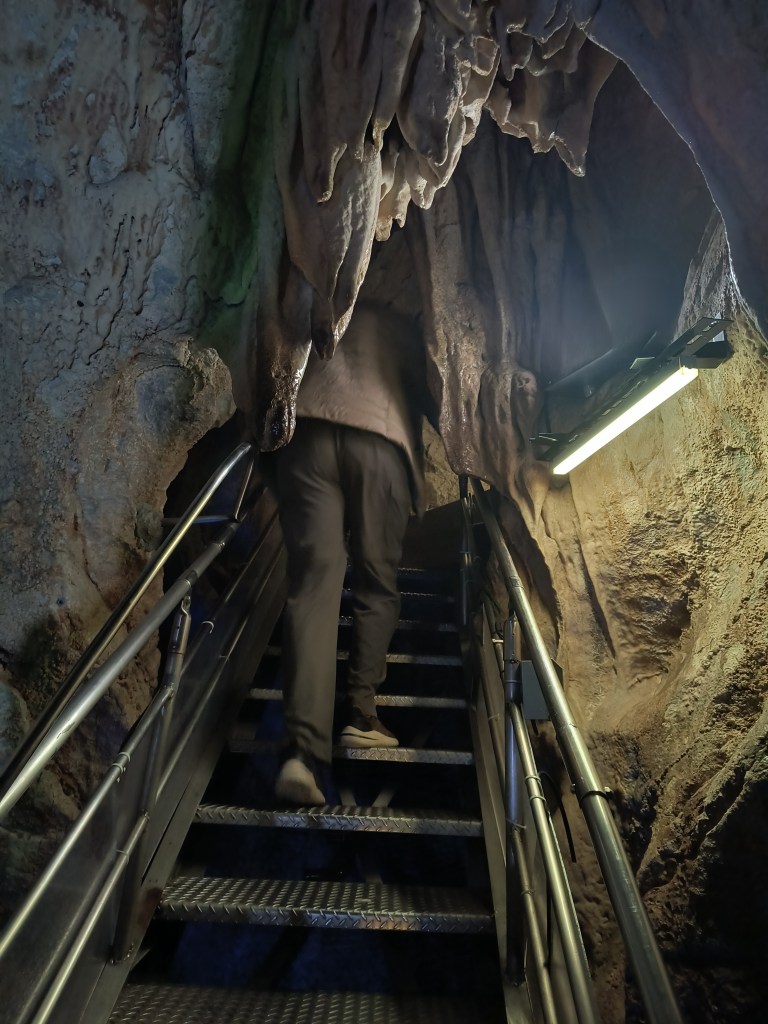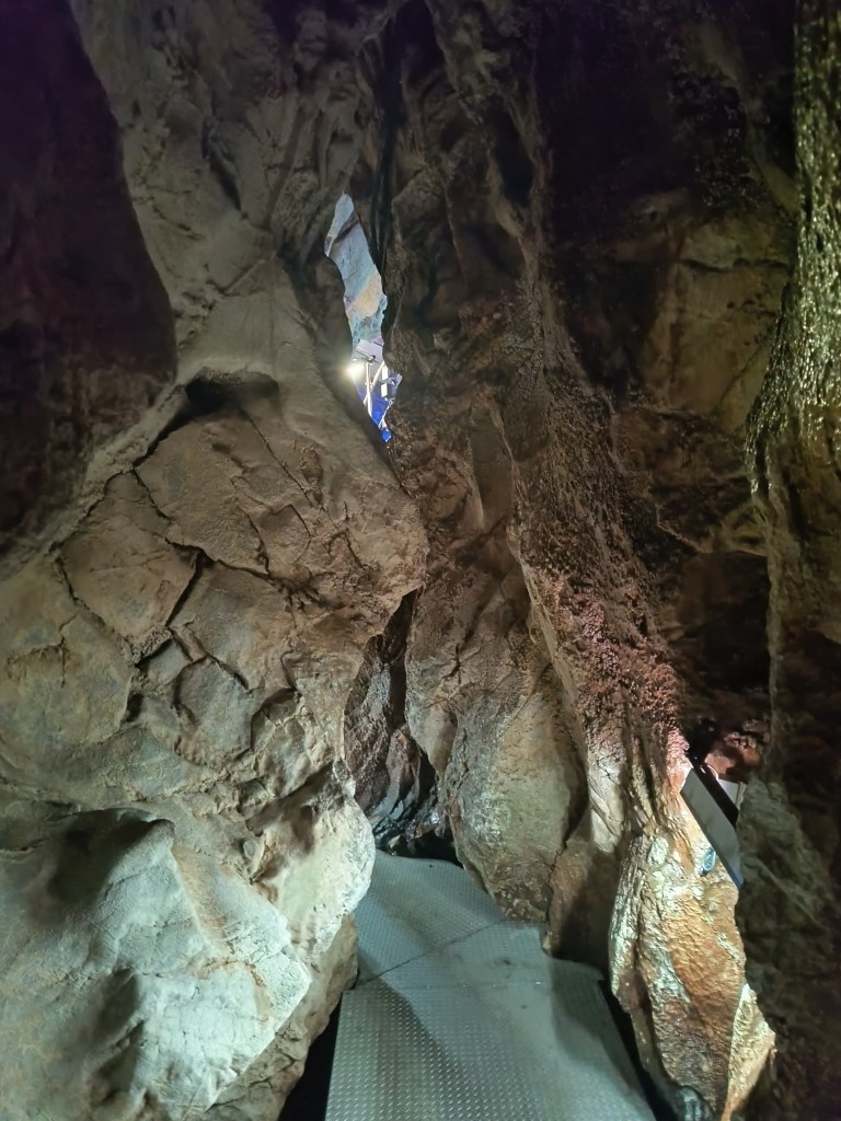 She explains that they will have to ask the ship, not her. And besides we are only walking through one kilometre of the cave, not the entire 5 kilometres, so it isn’t a problem. That doesn’t help! Also, she is petite and young. Most of the group are a lot taller, a lot older and a lot fatter. Me included.