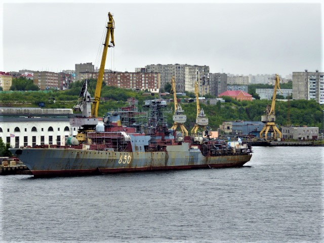 But the simple solution also has another advantage. It makes leaving the ship to wander around town completely impossible. But even if we could, we couldn’t. We are told over and over again, by announcements over the P.A. system and by written announcements left on our cabin door and on our bed, that no one can leave the ship on their own without having first obtained a Russian visa and permission to do so. Only one couple on board has chosen to obtain this at considerable cost. The rest of us can only leave on organised tours with a Russian “guide”.