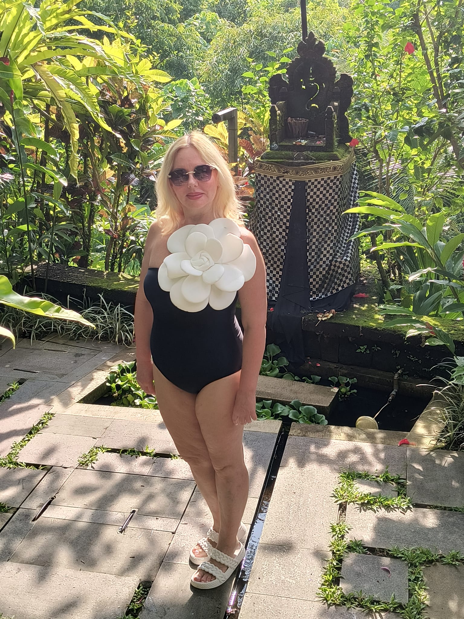 You have to admit, you don’t see a flower like that on a swimming costume every day of the week. Be thankful! I really wanted to see what happened when she went for a swim!