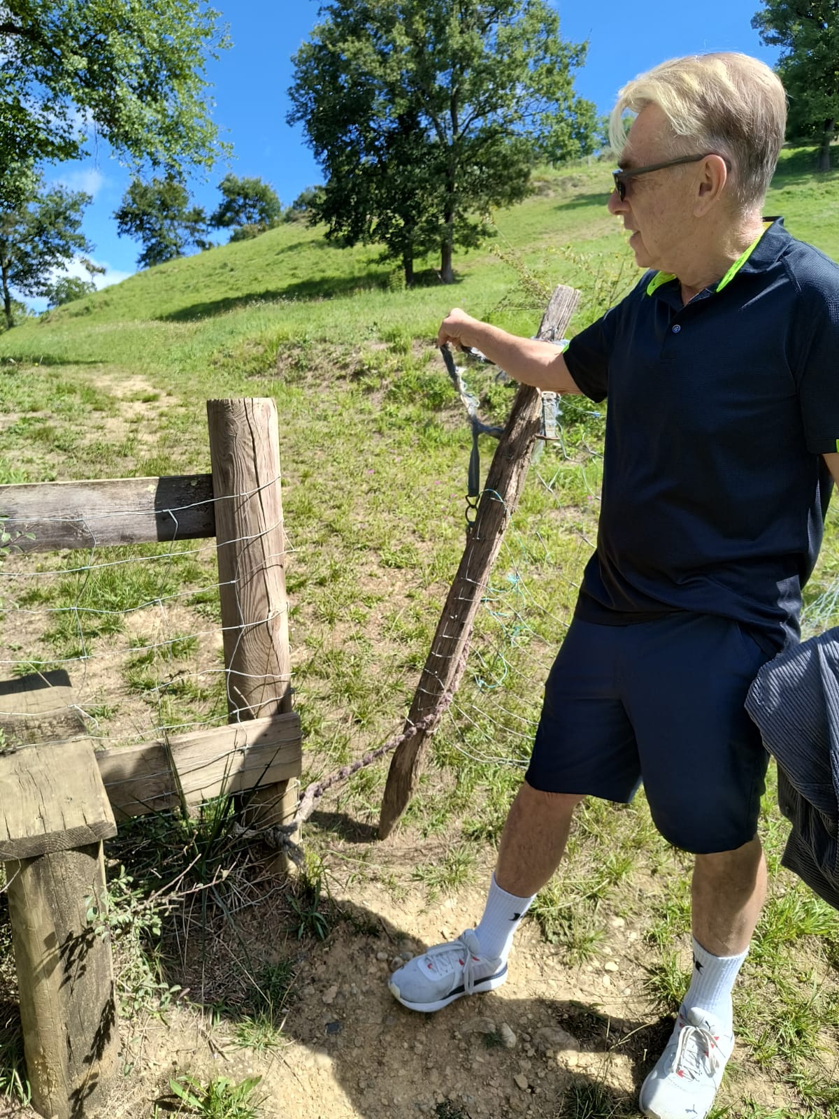 “Perhaps you could just lift off the tie around the fence post for me.”