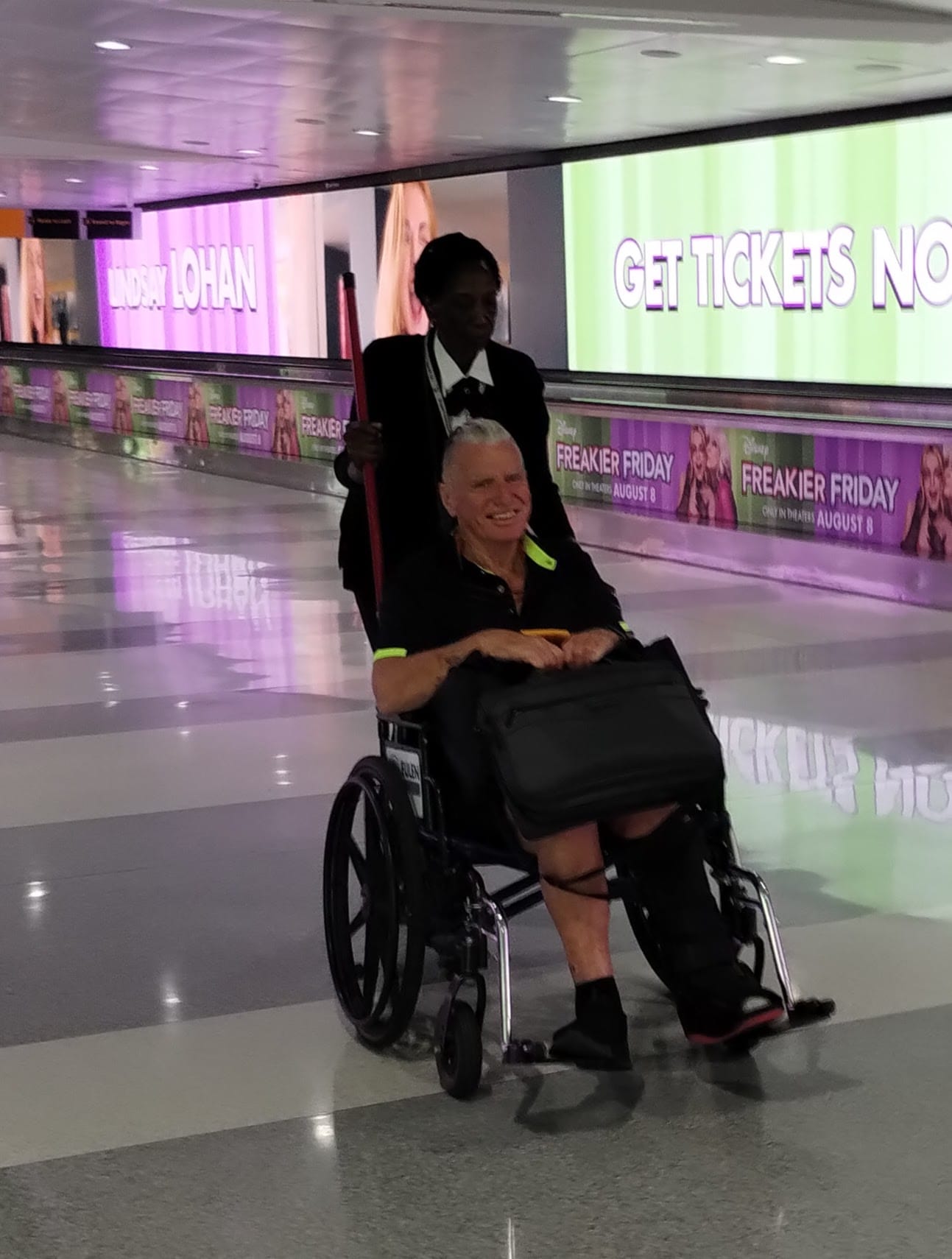 I felt so guilty when a lovely woman not many years younger than me, and thin as a rail, was assigned to push me from one end of JFK to the other. But I didn’t feel guilty enough to leap out of the chair and walk.